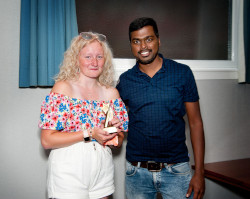 Aryan Sanghera receives his award from his captain, Greg McDougall (left) while Emily receives her award from her skipper, Peter Janampally (below)
