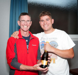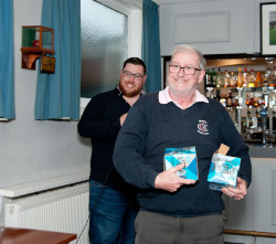 Ian Chambers is pleased to hand over PJ Bryceland's award (left)